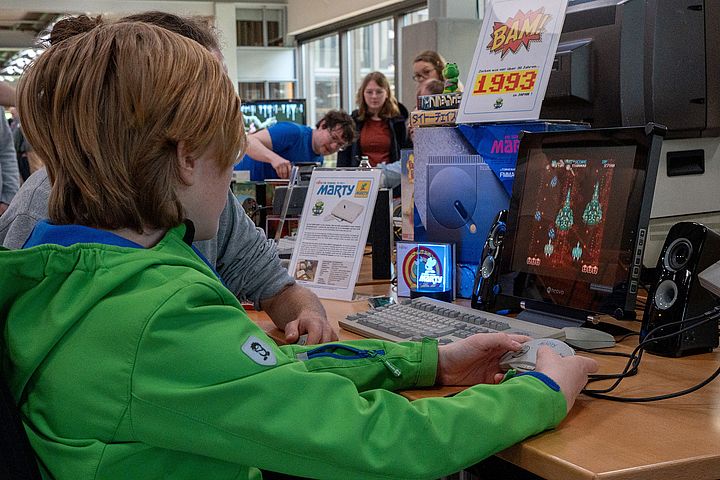 Unter den Museumgästen waren jedoch nicht nur Nerds, sondern auch sehr viele Familien. Die Rechner aus den letzten drei Jahrzehnten des vorigen Jahrhunderts begeistern nicht nur die Jüngsten, die sich gerne an die Tastaturen und Konsolen setzten.