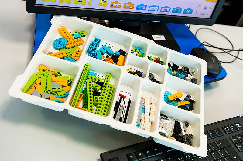 Danach geht es ins HNF, wo die Steine lebendig werden. Bunte Lego WeDo-Baukästen und ein bisschen Programmieren machen es möglich!