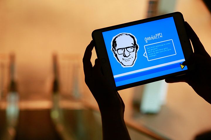 "Dein Chef - Heinz Nixdorf" heißt die Anwendung, die sich insbesondere an Acht- bis Zwölfjährige richtet, die mit ihren Eltern im HNF unterwegs sind. Sie läuft auf üblichen Tablet-Computern, die kostenlos ausgeliehen werden können.