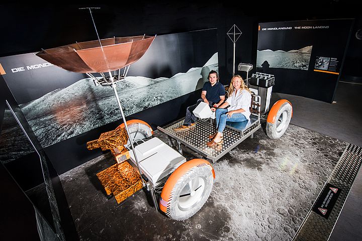 Eine Fahrt über den Mond im Moon Rover, mit einer Sojus-Kapsel an die ISS andocken oder mit einem Tablet in der Hand die Schichten eines Astronautenanzugs erkunden: Die Ausstellung informiert und unterhält gleichermaßen. Für Kinder bietet das Lunar Lander Land einen Weltraumspielplatz, in dem sie die Mondlandefähre durchklettern, einen Fußabdruck im Mondstaub hinterlassen und das Gewicht von Konservendosen auf den Planeten unseres Sonnensystems ermitteln können.