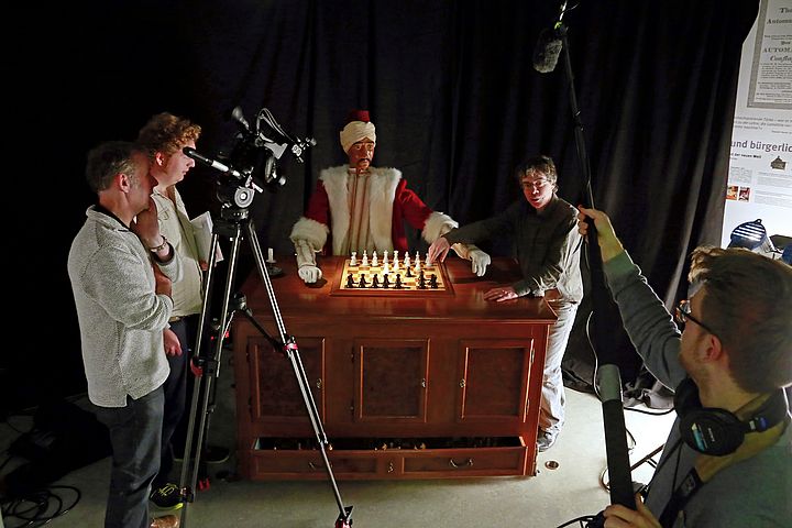 Einen Tag filmte die Crew die komplizierte Mechanik des „Türken“, der die Hauptrolle in einer einstündigen Dokumatation über frühe Automaten spielen wird, die im März in Großbritannien zu sehen ist und danach eventuell auch im deutschen Fernsehen gezeigt wird. Präsentiert wird die Sendung von dem renommierten Cambridge-Professor Simon Schaffer, der vom gesamten HNF begeistert war und selbst im „Türken“ Platz nahm, um ein paar Züge zu machen.