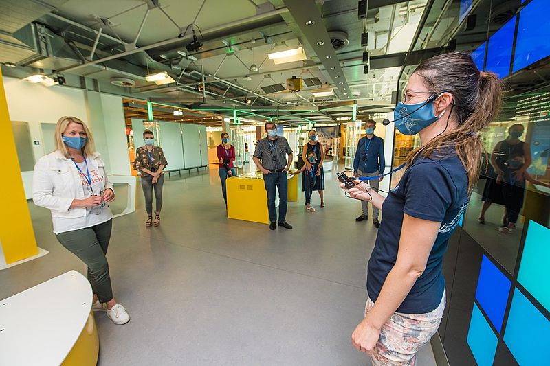 Aufgrund der Corona-Pandemie finden die Führung unter Berücksichtigung einiger Schutzmaßnahmen statt. Die Teilnehmerzahl ist auf 19 Personen begrenzt. Durch ein Audioführungssystem kann der notwendige Abstand von mindestens 1,5 Metern eingehalten und gleichzeitig eine gute Verständlichkeit gewährleistet werden.