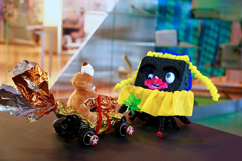 Die Roboter können aus Alltagsgegenständen bestehen, die schon immer mal aus den heimischen Schränken ausgemistet werden sollten: Kehrbleche, Kuscheltiere oder Küchengeräte. In einem dreistündigen Workshop am