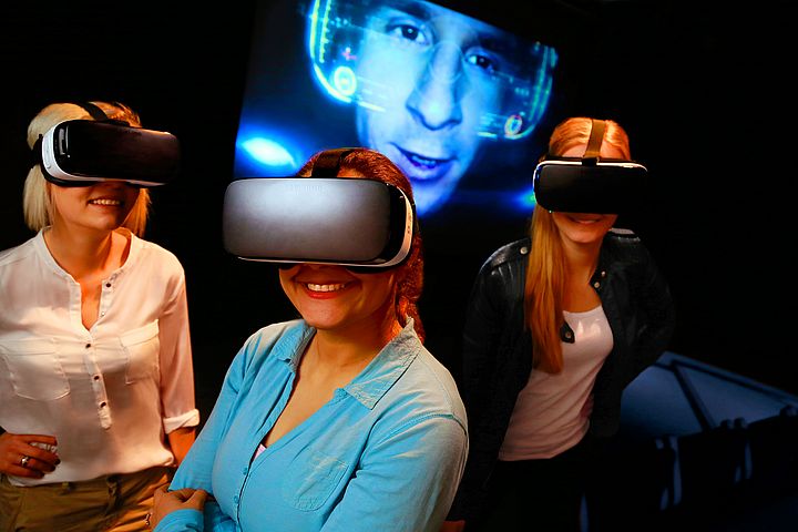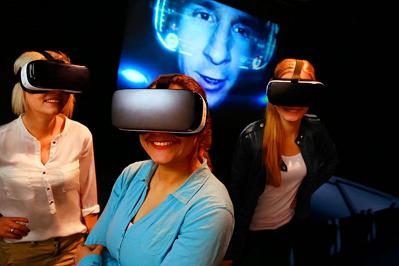 Ob auf dem Boden der Tiefsee, in den Weiten einer Wüstenlandschaft oder in der Manege des Cirque du Soleil: Mit einer speziellen VR-Brille vor Augen ist der Weg von Paderborn in phantastische Welten nicht weit. Im Gegensatz zu Filmen oder Computerspielen auf dem Fernseher und Monitor hat man durch die VR-Brille den Eindruck, sich direkt in der Umgebung zu befinden. Drehen und Nicken des Kopfes werden übernommen, damit entsteht ein realistischer Bewegungsablauf.