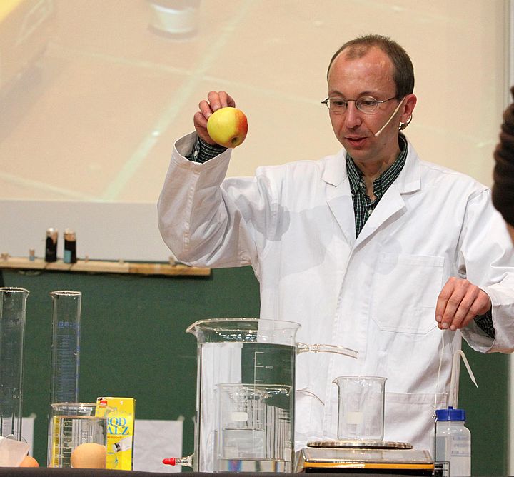 Naturwissenschaft zum Staunen und Mitraten ist ein Klassen-Quiz überschrieben, das von 10 bis 11 Uhr und von 12 bis 13 Uhr die Schulteams in den Bann ziehen soll. Der Chemiker Dr. Andreas Hoischen von der Universität Paderborn präsentiert spannende Experimente, viele Fragen und erstaunliche Antworten. Auch das Publikum ist gefragt, indem es seine Kandidaten durch richtiges Wissen oder gutes Raten in Abstimmungen mit dem Smartphone unterstützen kann.