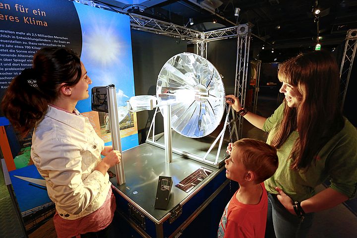 Die Klimawerkstatt geht nicht nur auf die Ursachen und Folgen des Klimawandels ein, sondern gibt jedem Besucher auch Hinweise und Tipps mit. Vor allem aber ist die Ausstellung ein Experimentierfeld mit zahlreichen spielerischen und interaktiven Elementen, das viel Spaß macht.