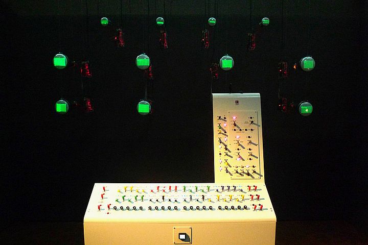 Bei der historischen Mark I wurden Befehle zwar noch von Lochstreifen eingelesen, als Hauptspeicher traten jedoch erstmals Fernsehröhren in Erscheinung. So ist auch das Werk von Link geprägt von grün schimmernden Röhren und einem altmodisch anmutenden Bedienpult.