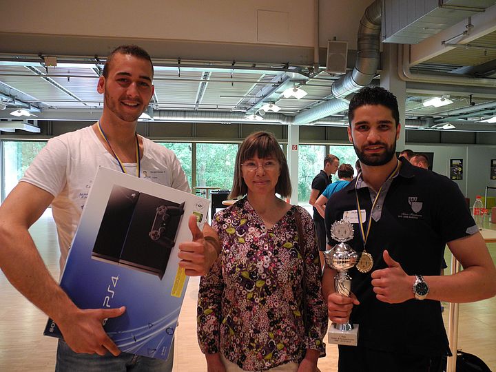 Bei dem Turnier spielten zwölf Mannschaften an der Playstation und am Kickertisch um den Sieg. Die Kombination beider Spiele sorgte für Spannung und Unterhaltung. Letztlich setzte sich das Team "Die glorreichen 2" aus Hövelhof sowohl mit einem Sieg am Kickertisch als auch an der Computerkonsole durch. Lohn für die Doppelbegabung war neben dem Pokal eine Spielekonsole, um die Fähigkeiten noch weiter auszubauen.