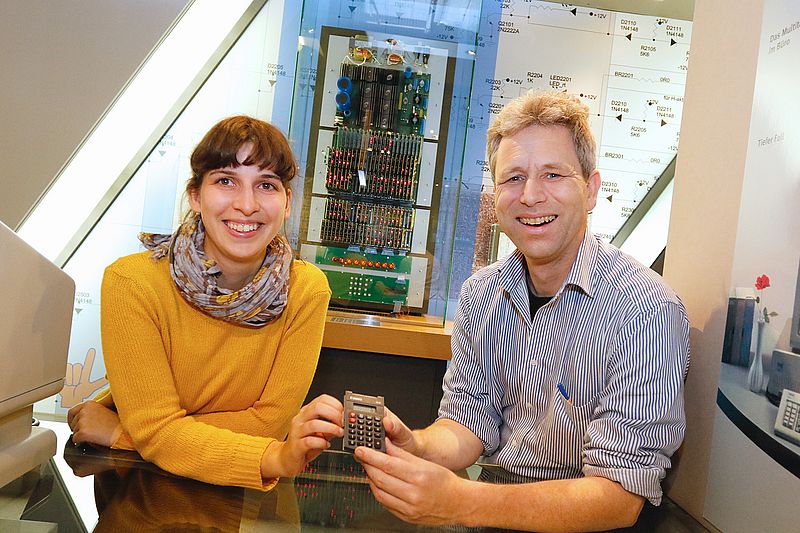 Einen Taschenrechner, der 1,40 Meter groß ist und rund einen Zentner wiegt, präsentiert das Heinz Nixdorf MuseumsForum seit Samstag in der Dauerausstellung. Dabei handelt es sich nicht um ein historisches Objekt, sondern um ein aktuell gefertigtes Einzelstück.