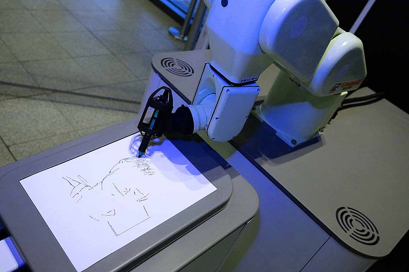 Roboter können nicht nur Schach oder Fußball spielen, sie sind mittlerweile auch als Künstler aktiv. Im Heinz Nixdorf MuseumsForum (HNF) steht der Roboter Vincent bereit, um von den Besuchern ein Porträt zu zeichnen.