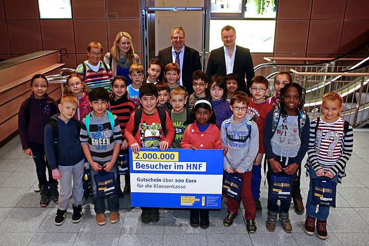 Am Donnerstag war es soweit: Der zweimillionste Besucher seit der Eröffnung des Heinz Nixdorf MuseumsForums betrat das Haus an der Paderborner Fürstenallee. Jubiläumsbesucher waren Schüler der Riemekeschule in Paderborn. Die Grundschüler machten einen Ausflug ins weltgrößte Computermuseum, um sich die aktuelle Sonderausstellung Fashion Talks anzusehen.