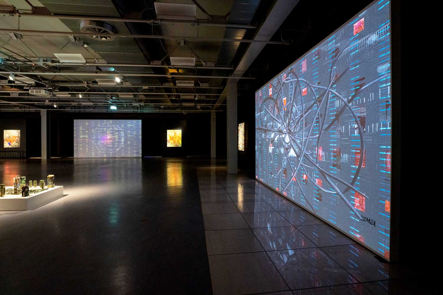 Aan de wanden breiden de Living Landscapes en de projecties van de Living Systems de installatie uit. Deze vallen deels terug op wereldwijde data en deels op Duitse of regionale data, en geven daarmee een complete, driedimensionale indruk van de ruimte.